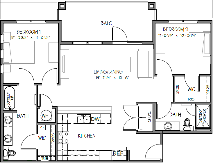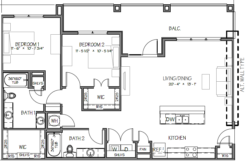 A2-A - Floorplan 2 2 Bedrooms