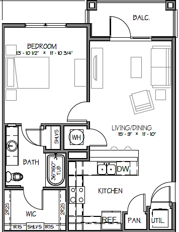 Apartment Model: A1-HC$1,2121 Bedroom, 1 Bath, 730 sq ftAvailable April 20, 2026FloorplansPhotos![]()
