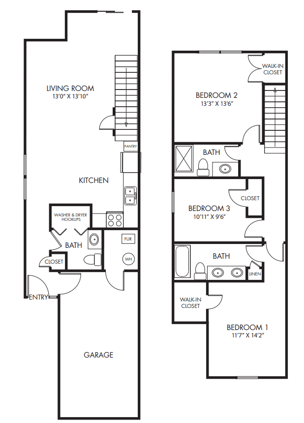 3 Beds, 2 Baths, 1196 sq ftAvailable NowModel Gallery