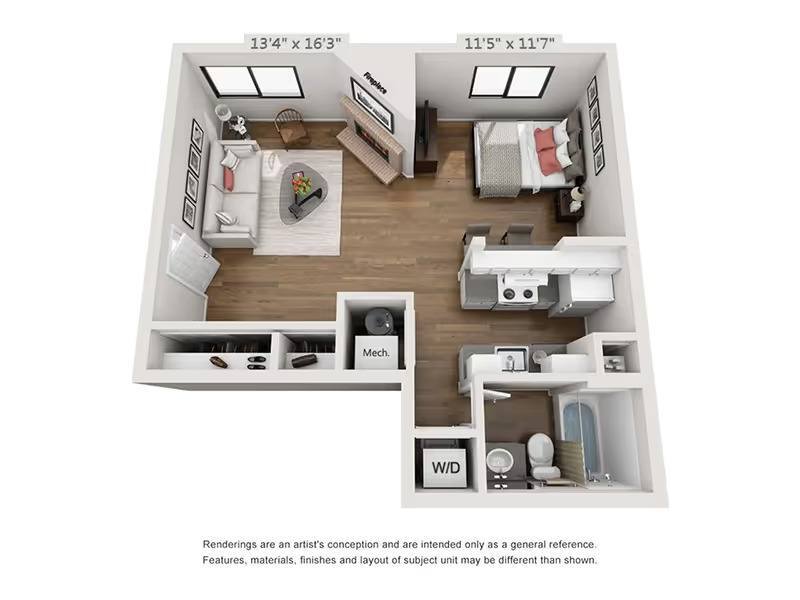 0x1 - Floorplan 1 Apartment Unit: D-103Apartment Model: 0x1Call For RatesStudio, 1 Bath, 535 sq ftAvailable April 7, 20261 Bedroom