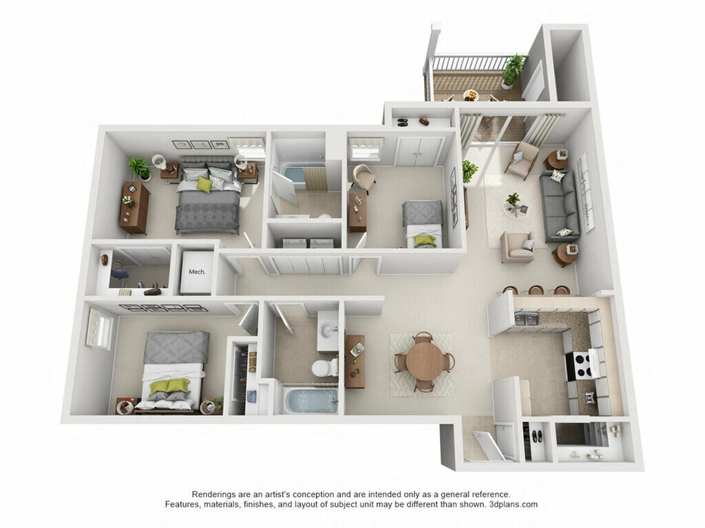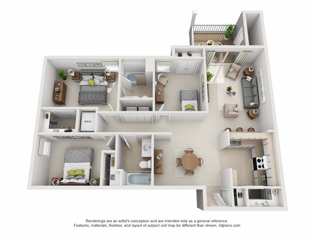 Apartment Model: C1RFrom $1,7153 Bedroom, 2 Bath, 1188 sq ftAvailable NowFloor plans are artist's rendering. All dimensions are approximate. Actual product and specifications may vary in dimension or detail. Not all features are available in every rental home. Prices and availability are subject to change. Base rent is based on monthly frequency. Additional fees may apply, such as but not limited to package delivery, trash, water, amenities, etc. Deposits vary. Please see a representative for details.