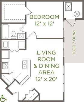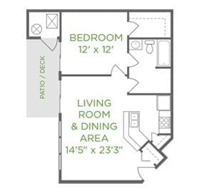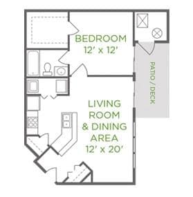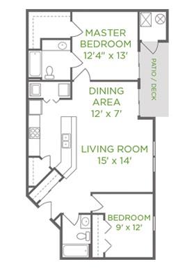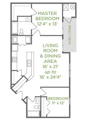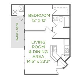 1 Bed, 1 Bath, 707-757 sq ftAvailable NowLargest 1 BedroomThis is the largest 1 Bedroom at this PropertyModel Gallery