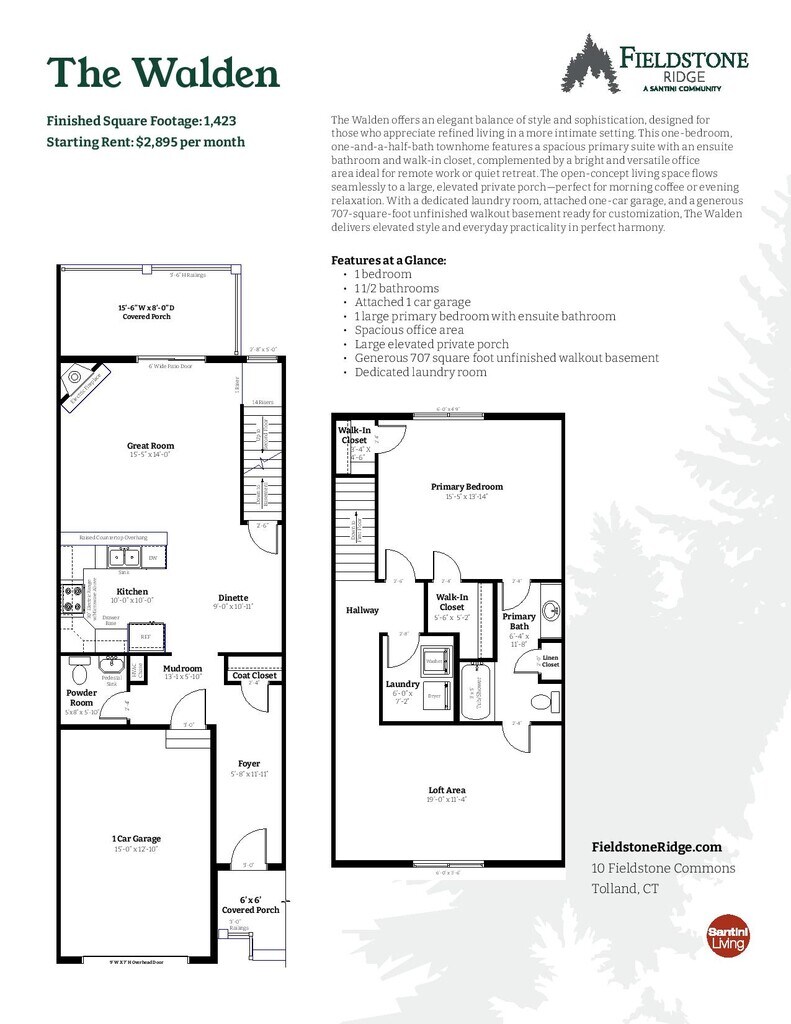 Apartment Model: The Walden$2,8951 Bedroom, 1.5 Bath, 1423 sq ftAvailable March 7, 2026Floor plans are artist's rendering. All dimensions are approximate. Actual product and specifications may vary in dimension or detail. Not all features are available in every rental home. Please see a representative for details.