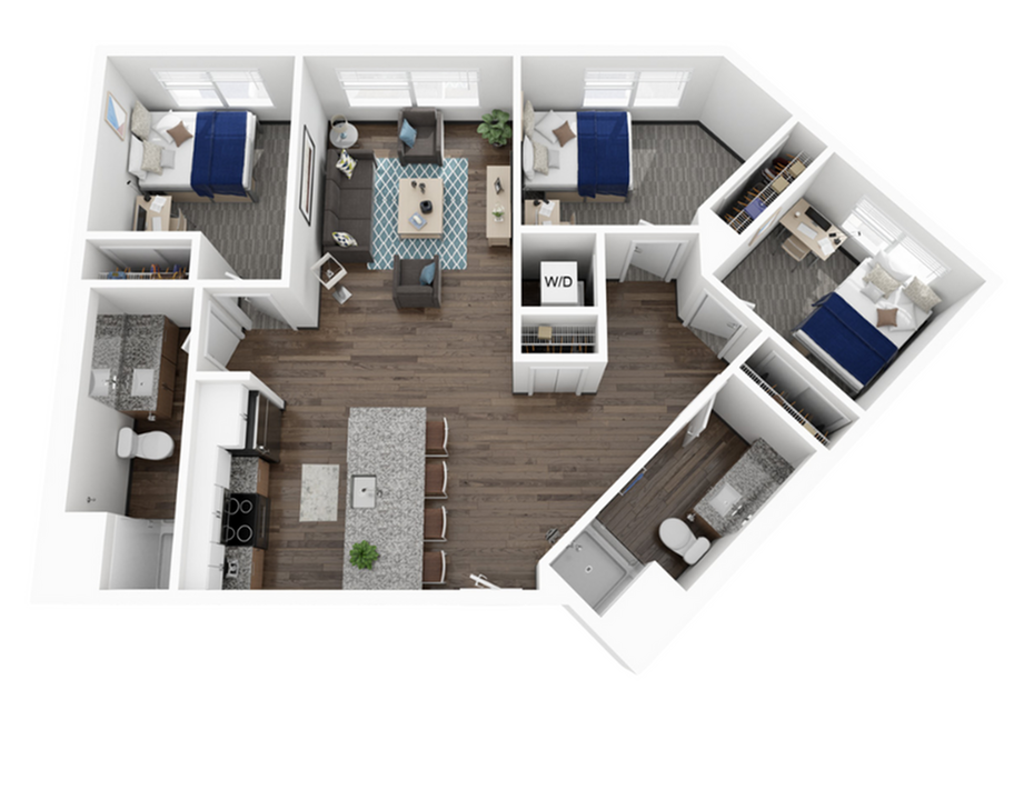 3 Beds, 3 Baths, 1037 sq ftTotal Monthly PriceAvailable NowLargest 3 BedroomThis is the largest 3 Bedroom at this PropertyModel Gallery