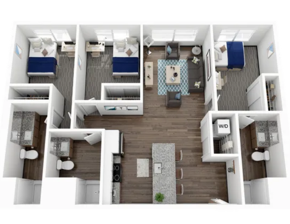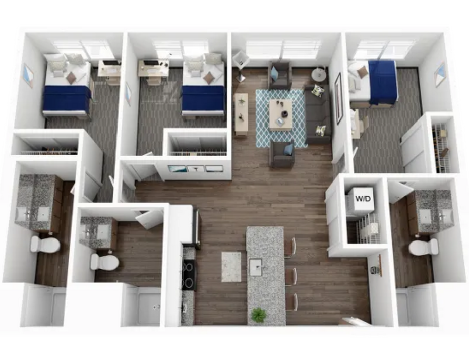 Apartment Model: 3x3 ATFrom $9993 Bedroom, 3 Bath, 1024 sq ftAvailable Now3x3 AT - Floorplan 1 Apartment Unit: Attached BathApartment Model: 3x3 AT$9993 Bedroom, 3 Bath, 1024 sq ftAvailable NowApartment Unit: Detached BathApartment Model: 3x3 AT$9993 Bedroom, 3 Bath, 1024 sq ftAvailable NowApartment Unit: Larger Room Attached BathApartment Model: 3x3 AT$9993 Bedroom, 3 Bath, 1024 sq ftAvailable Now3x3 AP
