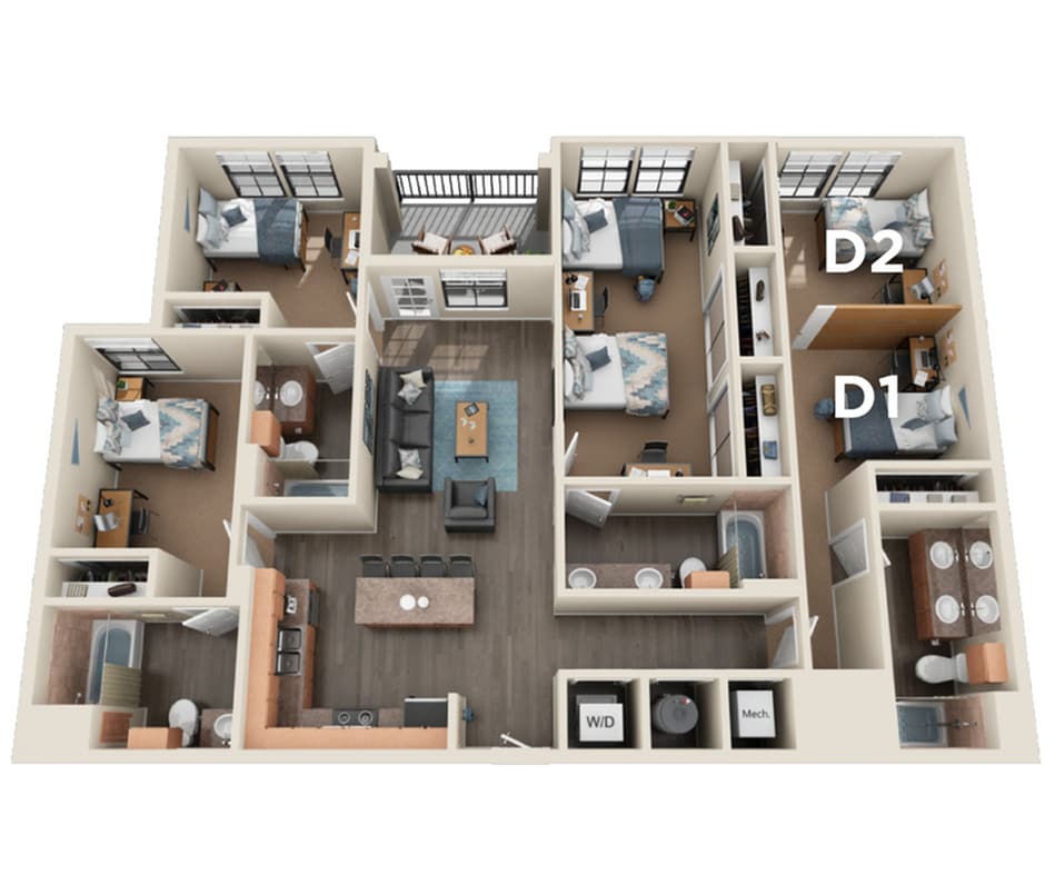 Price Availability Date Unit Sq Ft View Details $1,000/person Available Now Shared 1004 $1,940/person Available Now XL Bedroom 1004 $950/person August 20, 2026 Shared 1004 Model Amenities and Features