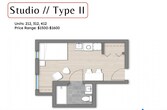 Apartment Model: Studio - 338 sqft$1,590Studio, 1 Bath, 338 sq ftAvailable October 30, 2025Studio - 338 sqft - Floorplan 1 Studio - 338 sqft - Floorplan 2 Apartment Unit: Unit 411Apartment Model: Studio - 338 sqft$1,590Studio, 1 Bath, 338 sq ftAvailable October 30, 2025Studio - 267 sqft