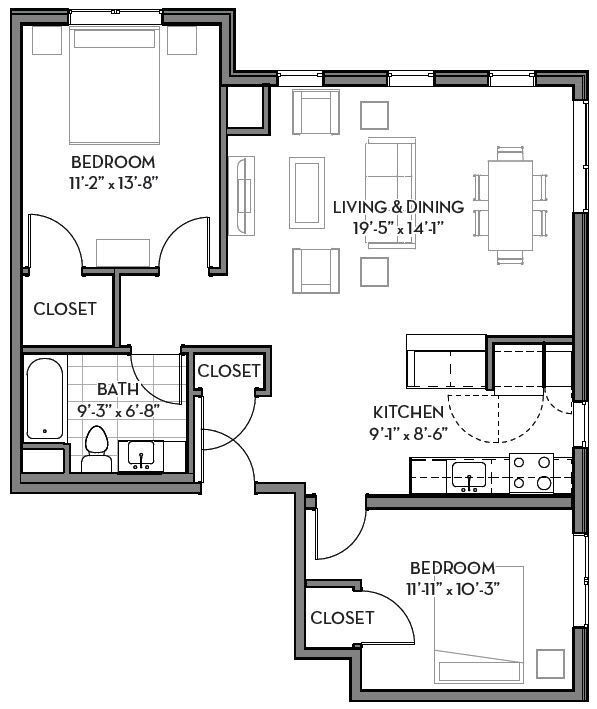 One Bedroom One Bathroom - Floorplan 4 2 Bedrooms