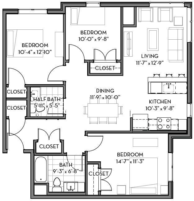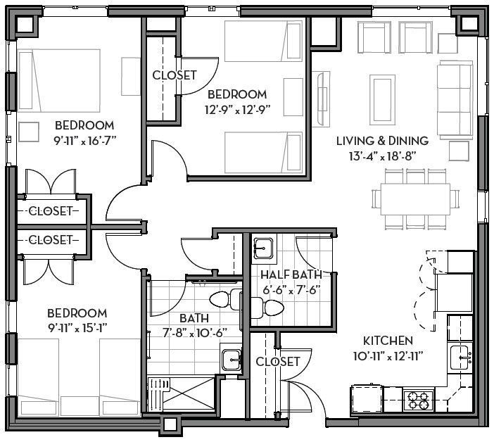 Availability Date Unit Sq Ft Unavailable Three Bedroom 1.5 Bathroom 1026-1172 sq ft Model Amenities and Features