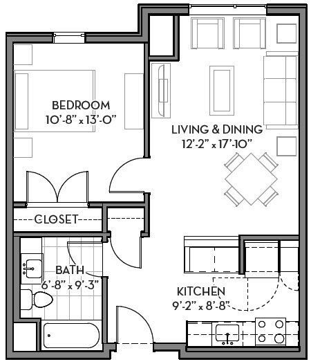 One Bedroom One Bathroom - Floorplan 1 ![]()