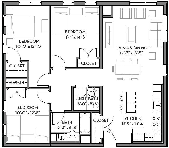 Three Bedroom 1.5 Bathroom - Floorplan 4