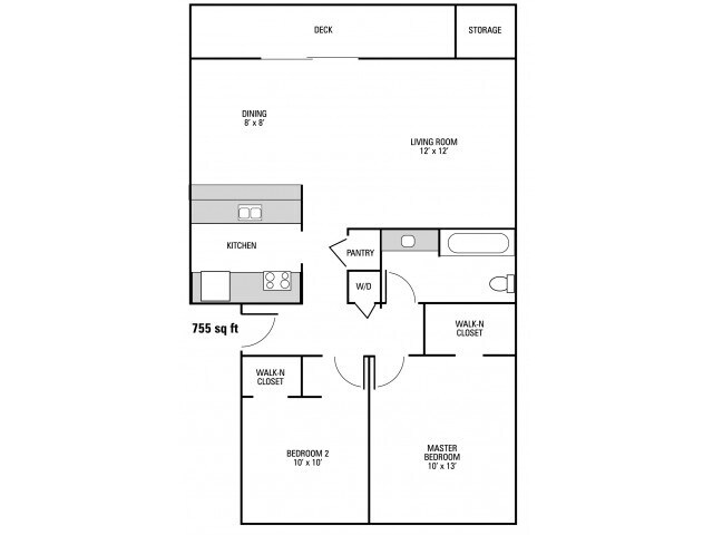 2 Beds, 1 Bath, 755 sq ftAvailable January 8, 2026Model Gallery