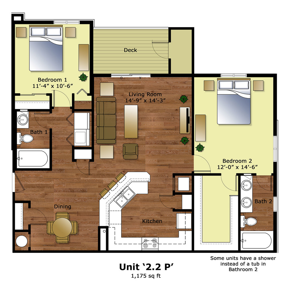 2 Beds, 2 Baths, 1175 sq ftAvailable Dec 24Largest 2 BedroomThis is the largest 2 Bedroom at this PropertyModel Gallery