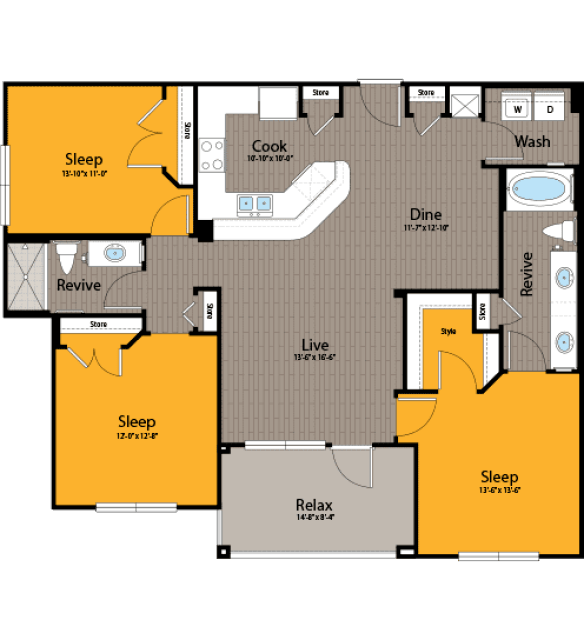Firewheel offers Studio to 3 Bedroom apartments starting from $1,035 and having 528–1,367 sq ft. Here is the current pricing and availability: