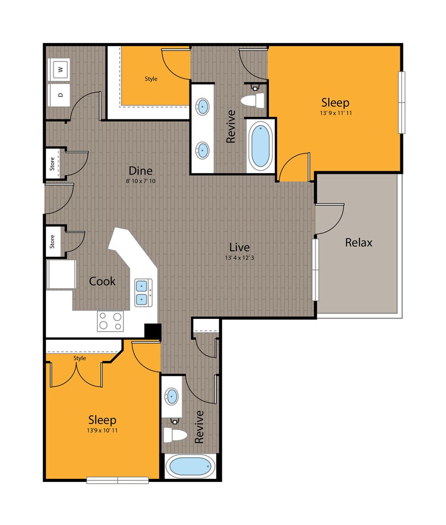 1 Bed, 1 Bath, 749 sq ftAvailable NowModel Gallery
