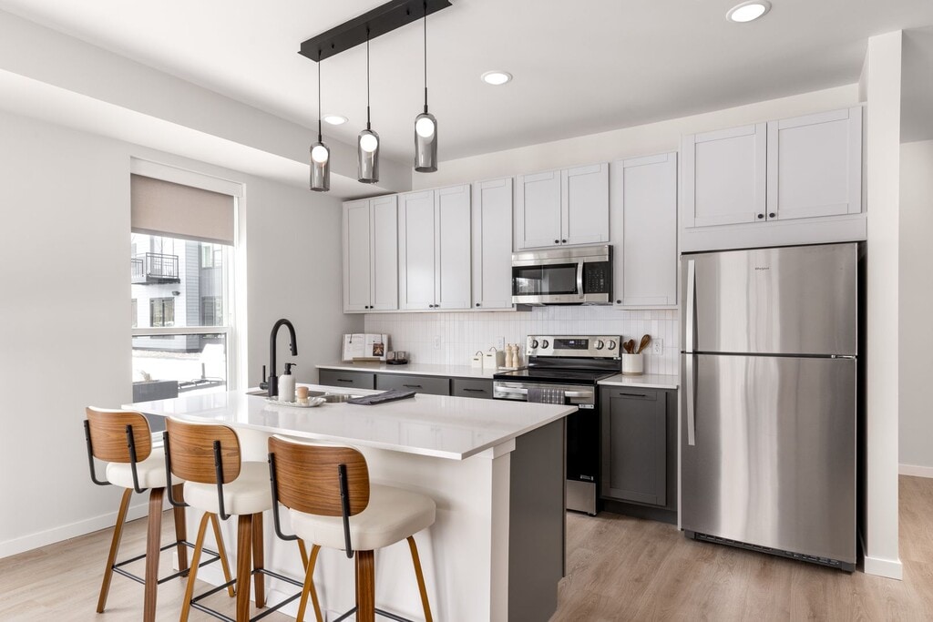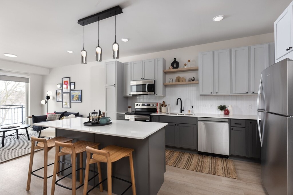 Unwind in sophisticated spaces and enjoy resort-class amenities like a fitness & yoga studio, three rooftop decks, EV charging stations, a complimentary coffee station and 24/7 mini market. First & Banks' studio, 1, 2, and 3-bedroom floor plans were expertly designed to maximize space and create unique layouts, including premier two-story walkout units. Each apartment home is filled with natural light, featuring open-concept contemporary kitchens and an in-home washer and dryer. Upgraded hand-picked finishes include wood-inspired flooring, tile backsplash, and quartz countertops that create an upgraded living experience. Neighboring a 150-acre public park complete with tennis courts, a running track, and a newly remodeled pool and aquatics area, the community provides access to the ultimate outdoor recreation within walking distance to downtown Rochester and the Mayo Clinic. *Rents and availability are subject to change. Contact the property office for exact pricing and available units. *Price shown is Base Rent - additional non-optional fees not included. Residents are required to pay: one time application fee ($50 per applicant), one time administration fee ($200 per unit), monthly technology package fee ($65 per unit), security deposit ($500 one-time refundable). Utilities included in base rent: none. Utilities not included in base rent: trash, in-unit electric, in-unit gas, water/sewer (varies based on usage), and $8 per unit monthly utility admin fee.