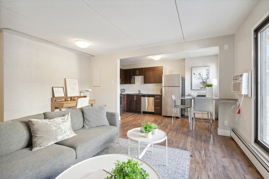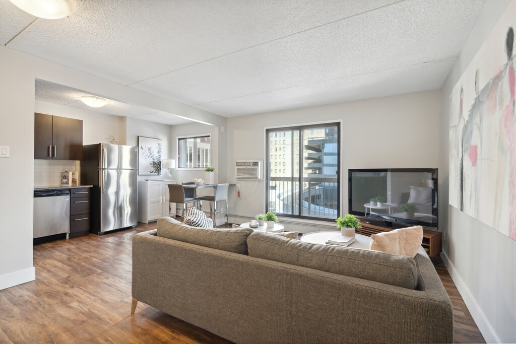Located in the heart of Calgary's Beltline District, First on Tenth gives you everything you need as a home base for you to explore all that downtown Calgary has to offer. Featuring 1 and 2 bedroom apartments, this pet friendly community is complete with contemporary fixtures, spacious open-concept layouts, and private balconies. Take delight in modern and newly renovated on-site amenities like a fully-equipped fitness centre, resident party room, games room, indoor basketball court, and laundry facilities, each outfitted with unique art pieces helping to bring unity and excitement throughout the community. Just outside, residents enjoy a private dog park and a cozy outdoor lounge. All of this and more at First and Tenth is monitored and maintained by on-site management and security. If you manage to pull yourself away from home, you'll find trendy boutiques, vintage markets, and unbeatable dining options all just steps away. Stephen Avenue, Olympic Plaza, Arts Common, Glenbow Museum, and the Calgary Tower are also just minutes away. Join us at First and Tenth, a gorgeous apartment situated in the centre of some of Calgary's best sights and sounds.