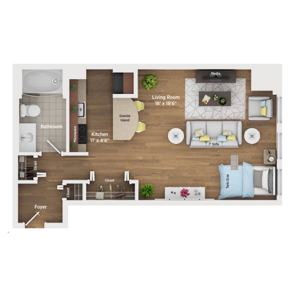 Studio, 1 Bath, 600 sq ftModel Gallery