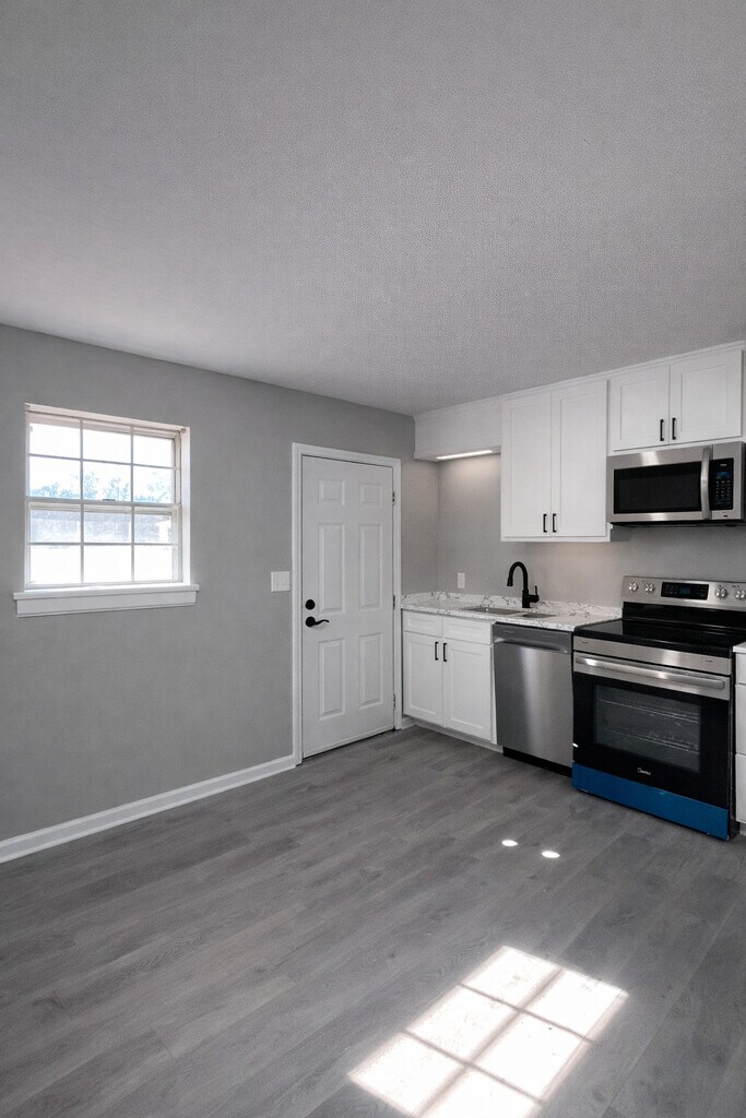 Be the first to live in this fully renovated 1 bed apartment! Completely remodeled, this unit features LVP floors, stainless steel appliances ( +dishwasher & microwave), new cabinets & countertops, updated lighting & fixtures, a brand-new bathroom, & large windows with great natural light. Super quiet area just off Memorial Pkwy, 1 mile from Ditto Landing, 3 miles from the Arsenal Gate 3. Onsite laundry & water included! Pet-friendly, non-smoking.