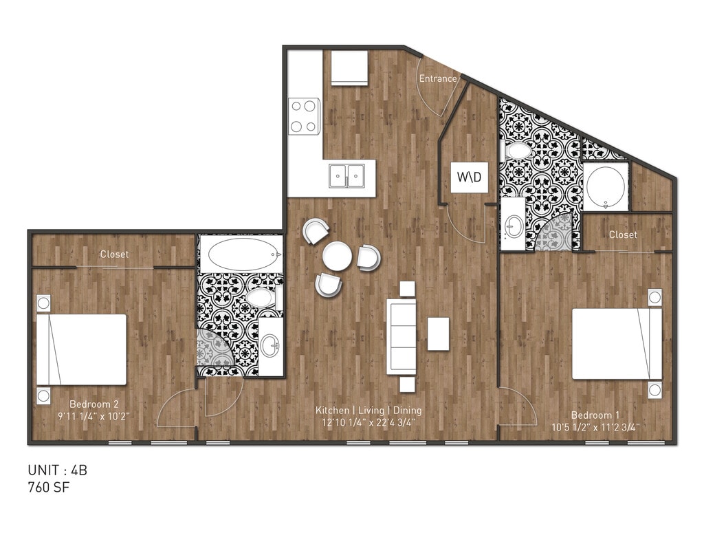 2 Beds, 2 Baths, 760 sq ftModel Gallery