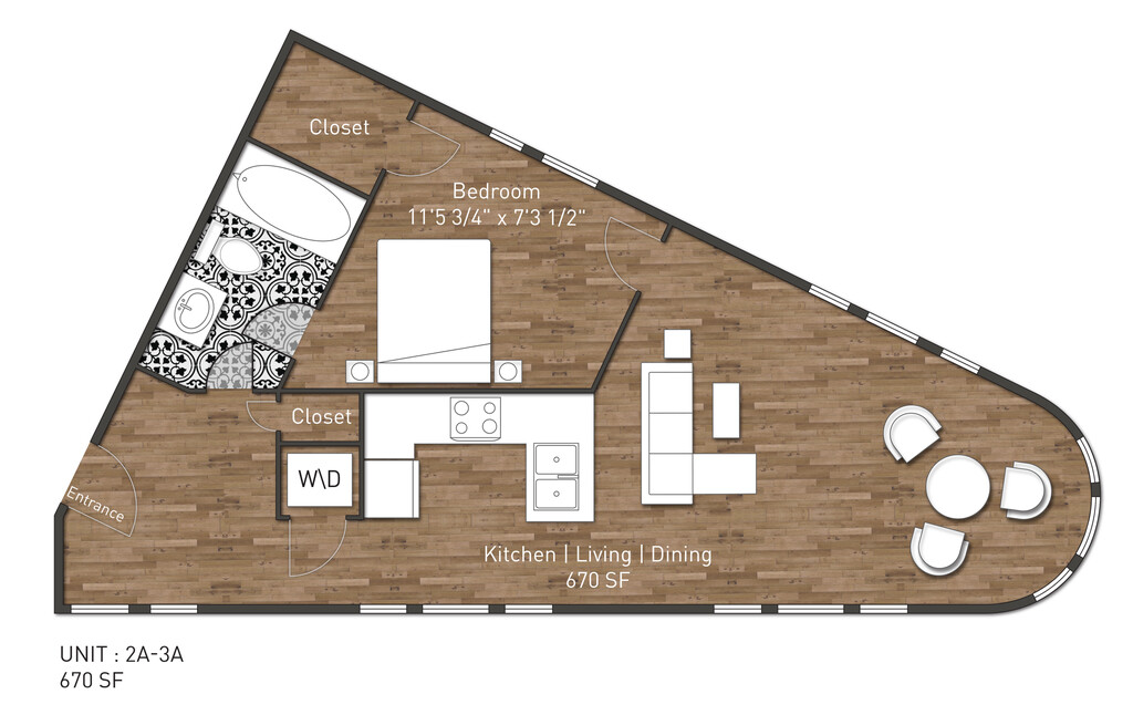 Availability Date Unit Sq Ft Unavailable 2A/3A 670 sq ft Apartment Model: 2A/3A1 Bedroom, 1 Bath, 670 sq ftUnavailableFloorplansPhotos![]()