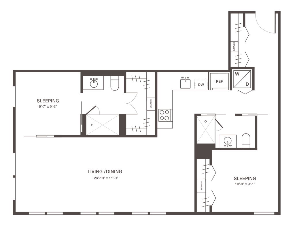 1 Bed, 1 Bath, 610 sq ftAvailable NowLargest 1 BedroomThis is the largest 1 Bedroom at this PropertyModel Gallery