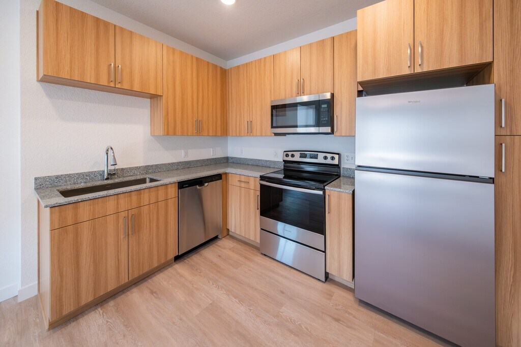 Fitz Gateway is a 210-unit affordable housing community located at 12100 E. Colfax Avenue in Aurora. The six-story building includes a mix of one- and two-bedroom apartment homes designed to serve residents earning between approximately 30%, 50%, 60% and 70% of the Area Median Income (AMI). The community sits along the Colfax corridor at the intersection of Colfax Avenue and Peoria Street, directly across from the nationally recognized Anschutz Medical Campus and within the growing Fitzsimons Innovation Community. The building features modern architecture and thoughtfully designed community spaces that support a comfortable residential environment. Amenities include an on-site leasing office, community gathering spaces, landscaped outdoor courtyards, fitness center, along with convenient covered parking for residents. This location provides residents with convenient access to major employers, healthcare, education, and public transportation. Nearby transit options along Colfax Avenue connect residents to the broader Denver metro area, while the surrounding Fitzsimons district continues to grow as a vibrant center for research, employment, and neighborhood services.