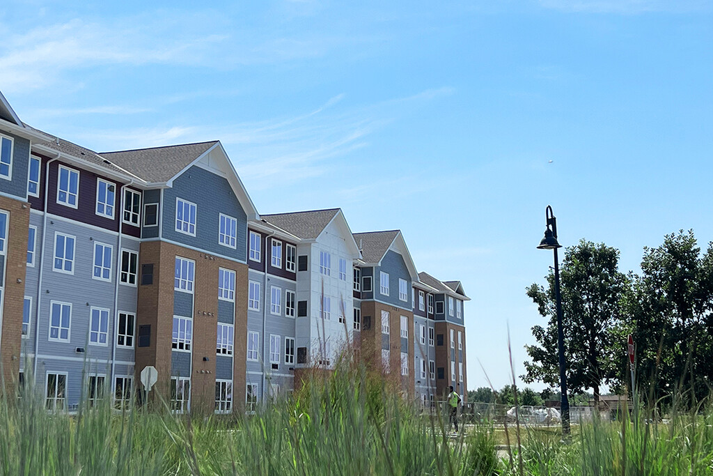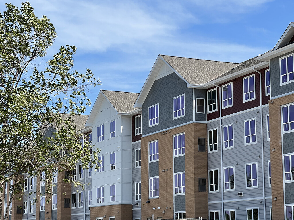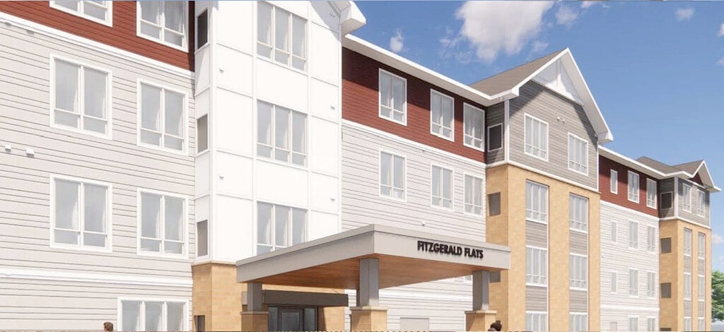Fitzgerald Flats is an apartment building providing affordable living, located in Forest Lake, Minnesota. Construction will be complete in Fall 2022, with move-in starting October 14th. Fitzgerald Flats offers 1-, 2- and 3-bedroom units and will have a basketball court, a dog run and an outdoor community space.
