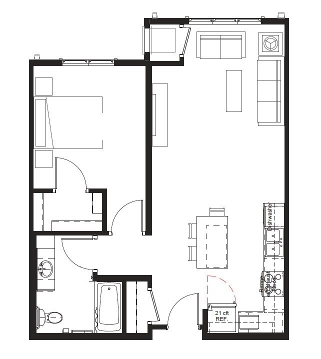 One Bedroom, One Bath Tax Credit - Floorplan 1 One Bedroom, One Bath, Market Rate