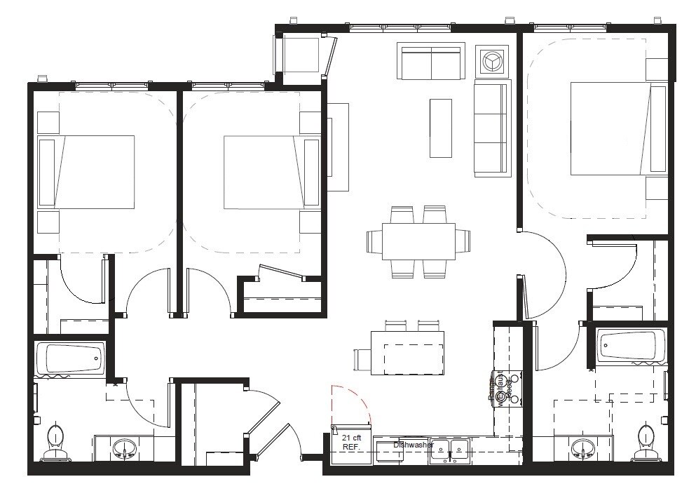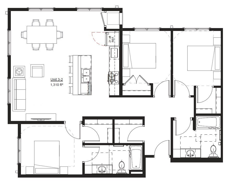 Two Bedrooms, One Bath, Market Rate - Floorplan 1 3 Bedrooms