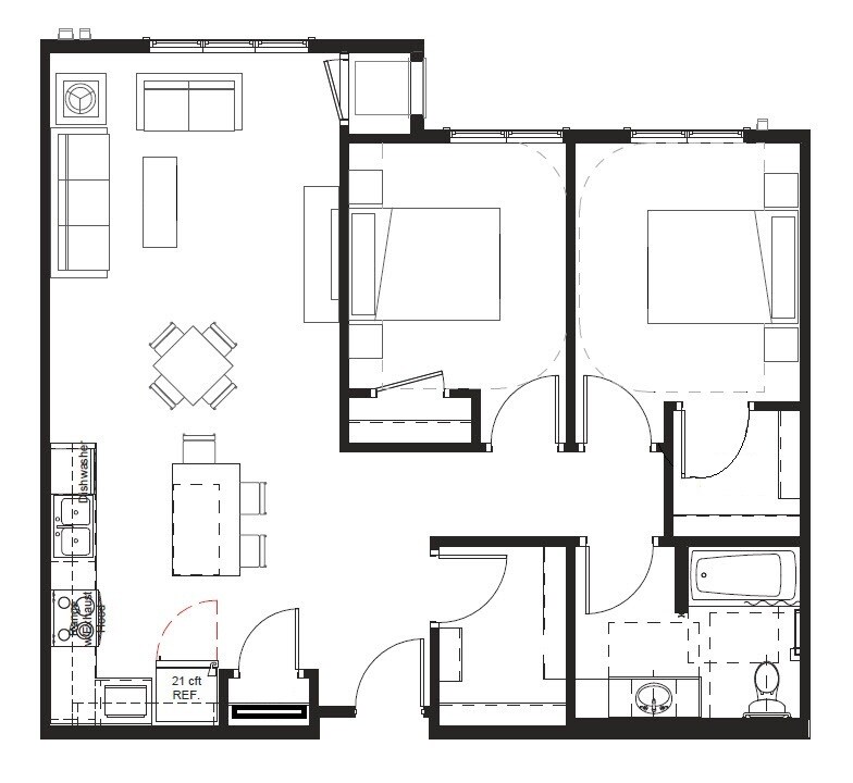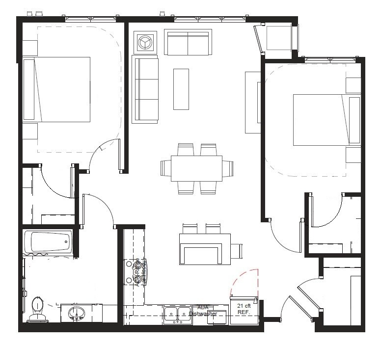 One Bedroom, One Bath, Market Rate - Floorplan 1 2 Bedrooms