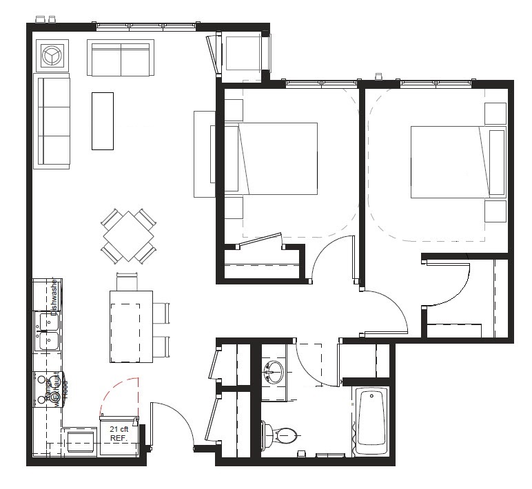 Two Bedroom, One Bath, Tax Credit - Floorplan 3 Two Bedrooms, One Bath, Market Rate