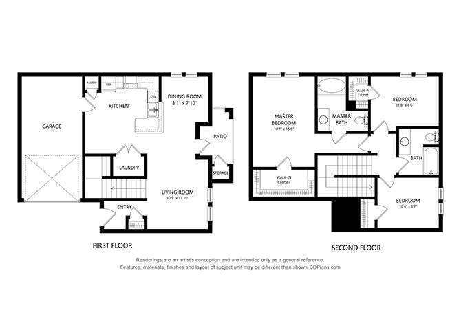 Two Bedroom Townhome - Floorplan 1 3 Bedrooms