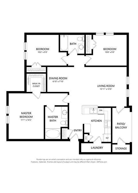 Apartment Model: Three Bedroom Apartment3 Bedroom, 2 Bath, 1268 sq ftAvailable Now![]()