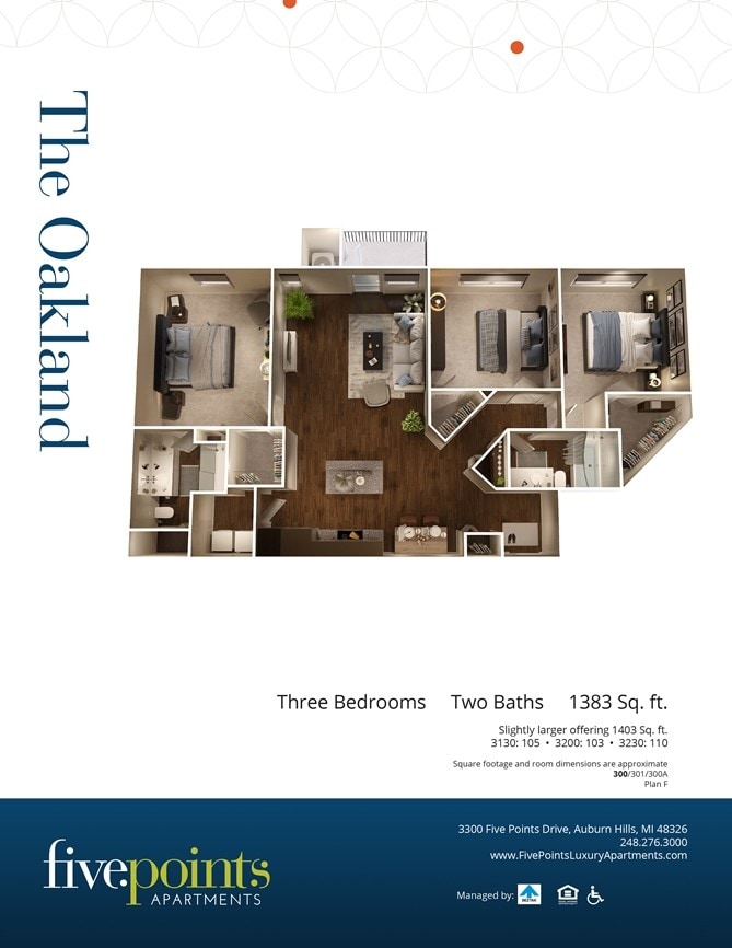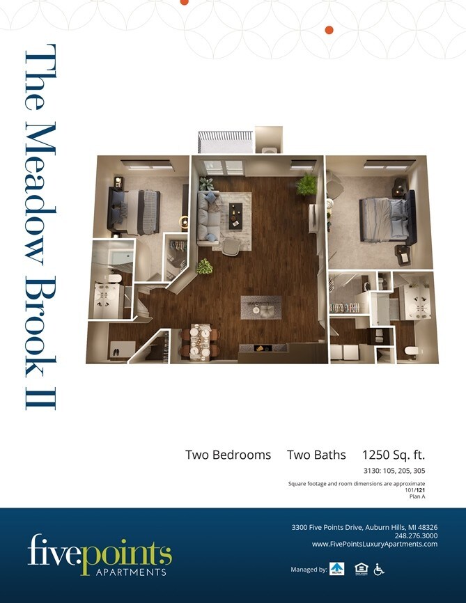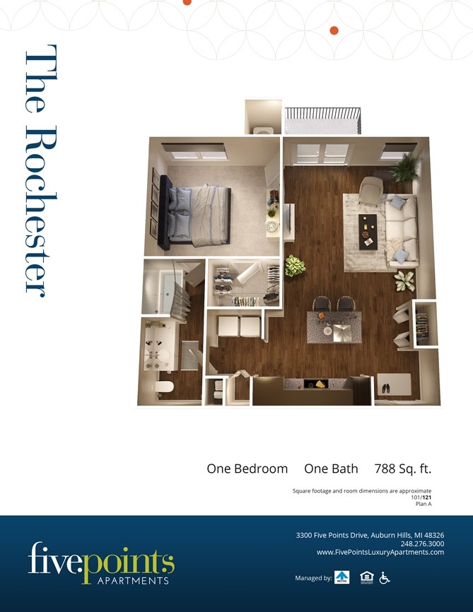This property is managed by Beztak, 2025 recipient of the US Best Managed Companies for the sixth year in a row, sponsored by Deloitte Private and The Wall Street Journal. Call and let us tell you why! Built around you, Five Points offers more than spacious, luxurious apartment residences its a way of life. With the bustling downtown districts of Auburn Hills, Rochester and Troy nearby, Five Points is at the center of high-end dining and retail. Culture, music and theatre also await at Meadow Brook Theatre and Music Festival, DTE Energy Theatre and more only minutes away. Centrally located near many of the areas largest employers and within steps of Oakland University Five Points delivers access to a connected lifestyle.Five Points Apartment Community: where youre at the center. With extraordinary features and unparalleled amenities set in the hub of Oakland County, Five Points connects you to comfort and convenience every day.