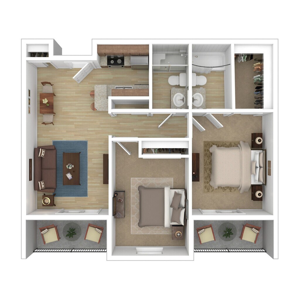 1 Bed, 1 Bath, 625 sq ftModel Gallery