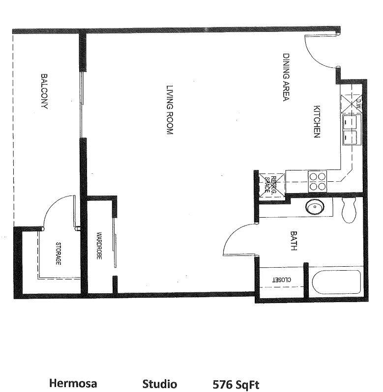 Studio, 1 Bath, 576 sq ftModel Gallery