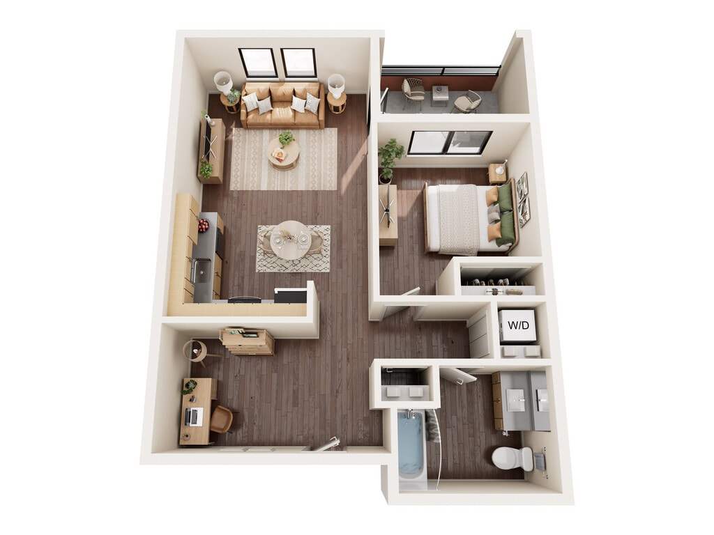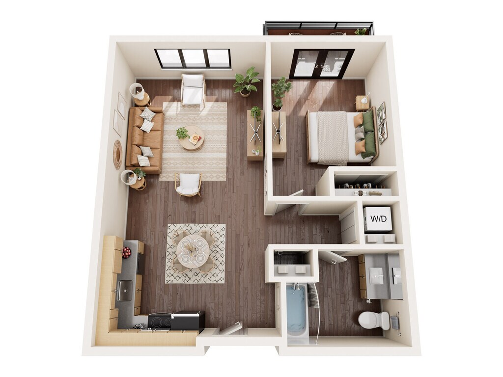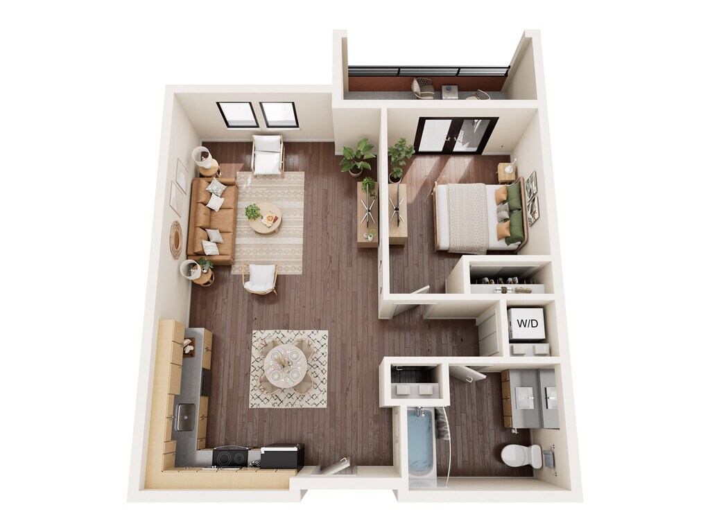 1 Bed, 1 Bath, 604 sq ftModel Gallery