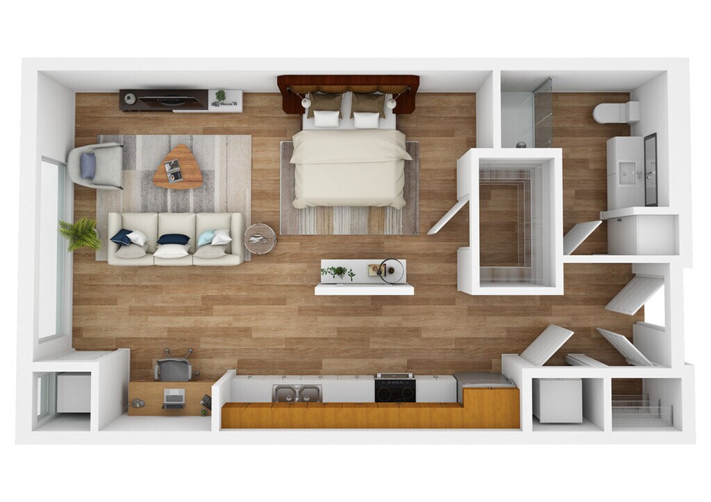 Studio, 1 Bath, 637-640 sq ftAvailable NowModel Gallery