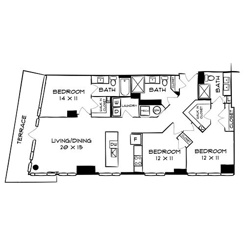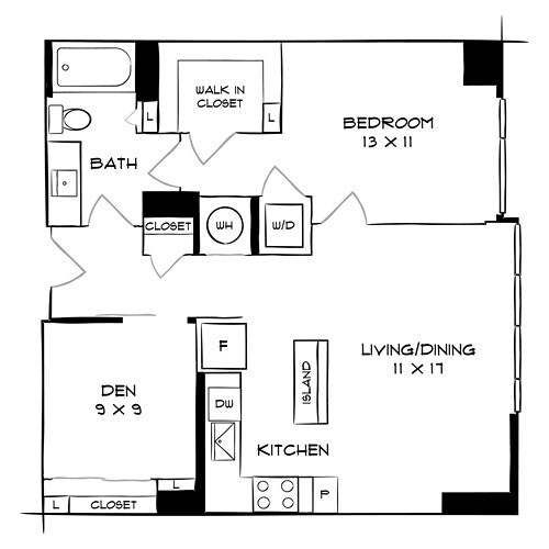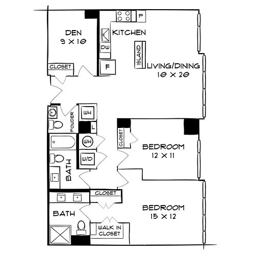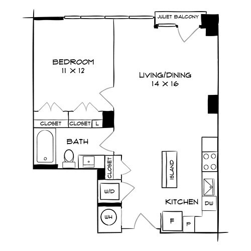 Apartment Model: Design 1B10From $2,3821 Bedroom, 1 Bath, 588-695 sq ftAvailable Now![]()