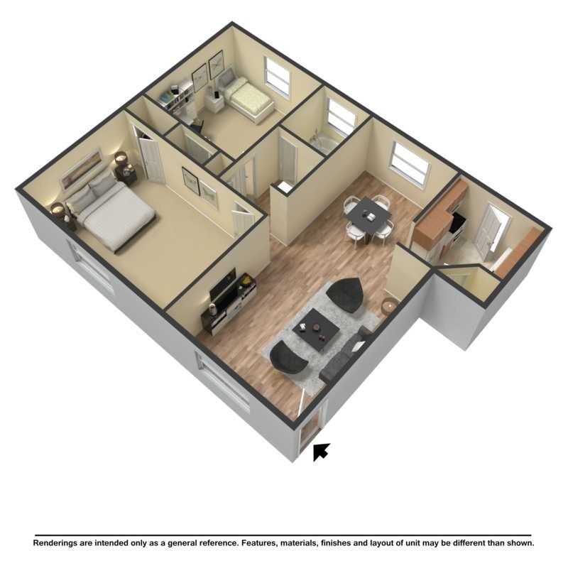 2 Beds, 1 Bath, 830 sq ftModel Gallery