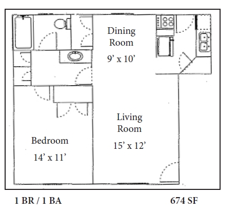 Apartment Model: 1x11 Bedroom, 1 Bath, 674 sq ftUnavailable![]()