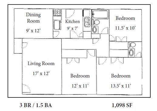 Apartment Model: 3x13 Bedroom, 1.5 Bath, 1098 sq ftUnavailable![]()