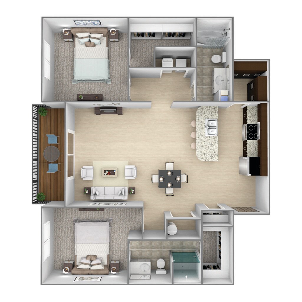 2 Beds, 2 Baths, 1102 sq ftAvailable NowLargest 2 BedroomThis is the largest 2 Bedroom at this PropertyModel Gallery
