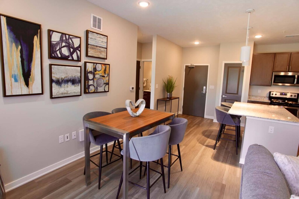 If you are looking for a comfortable and convenient place to call home, look no further than The Flats at 5th Apartments in Columbus, NE. Our pet-friendly community features studio, one and two bedroom apartments with stylish interiors and thoughtful features. You will love the wood plank flooring, granite countertops, stainless steel appliances, and in-unit washer and dryer in your apartment. Plus, you will enjoy the benefits of our amazing amenities, such as the clubhouse, pool, fitness center, dog park, bike racks, and more. Our onsite management and maintenance team is always ready to assist you with any needs or requests. Whether you want to relax, socialize, or stay active, The Flats at 5th Apartments has something for everyone.