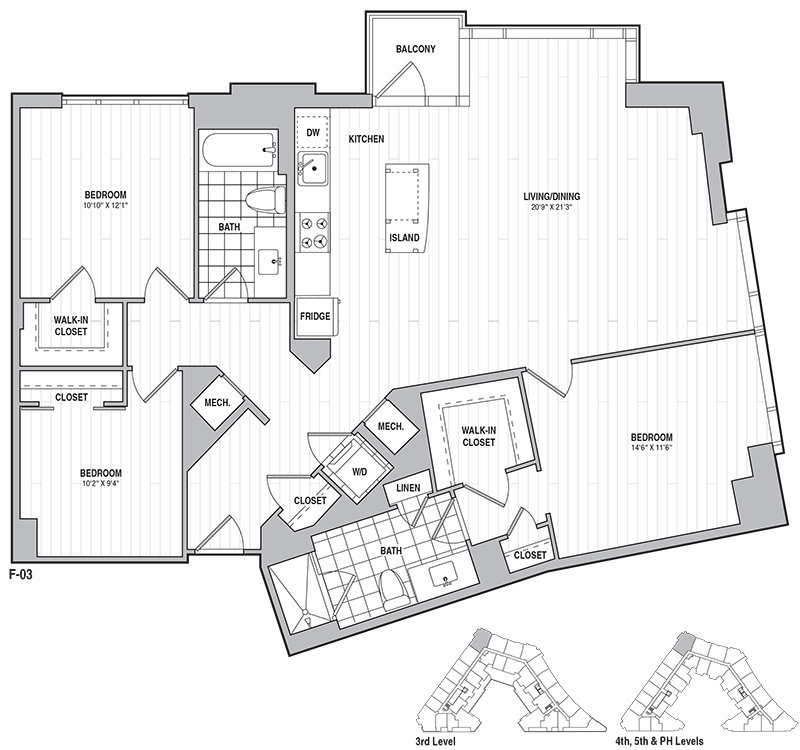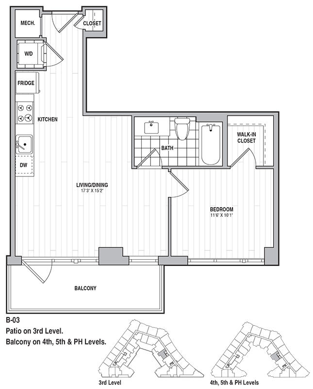 Apartment Model: 1 Bed 1 Bath 721From $3,1471 Bedroom, 1 Bath, 721 sq ftAvailable Now![]()