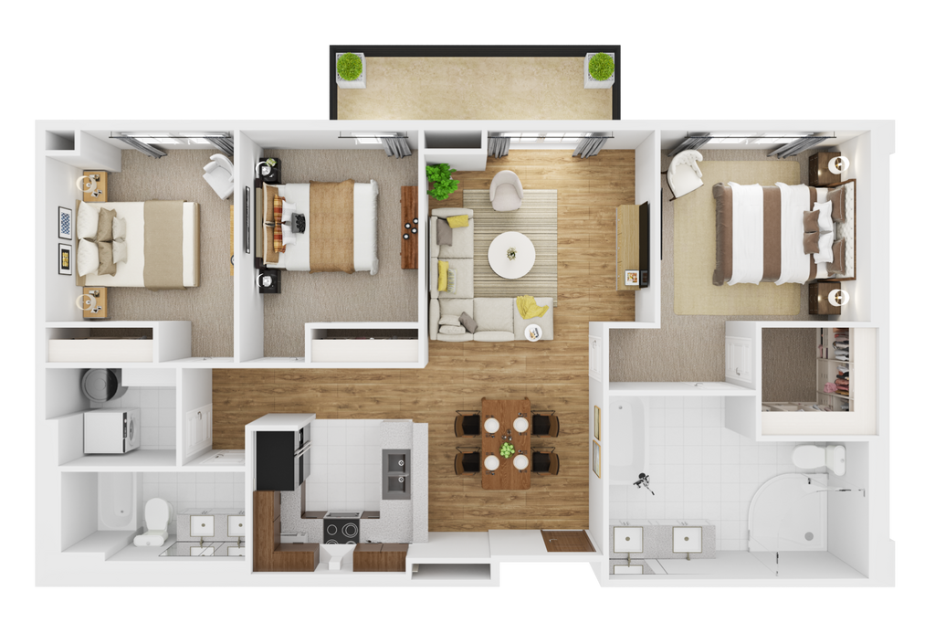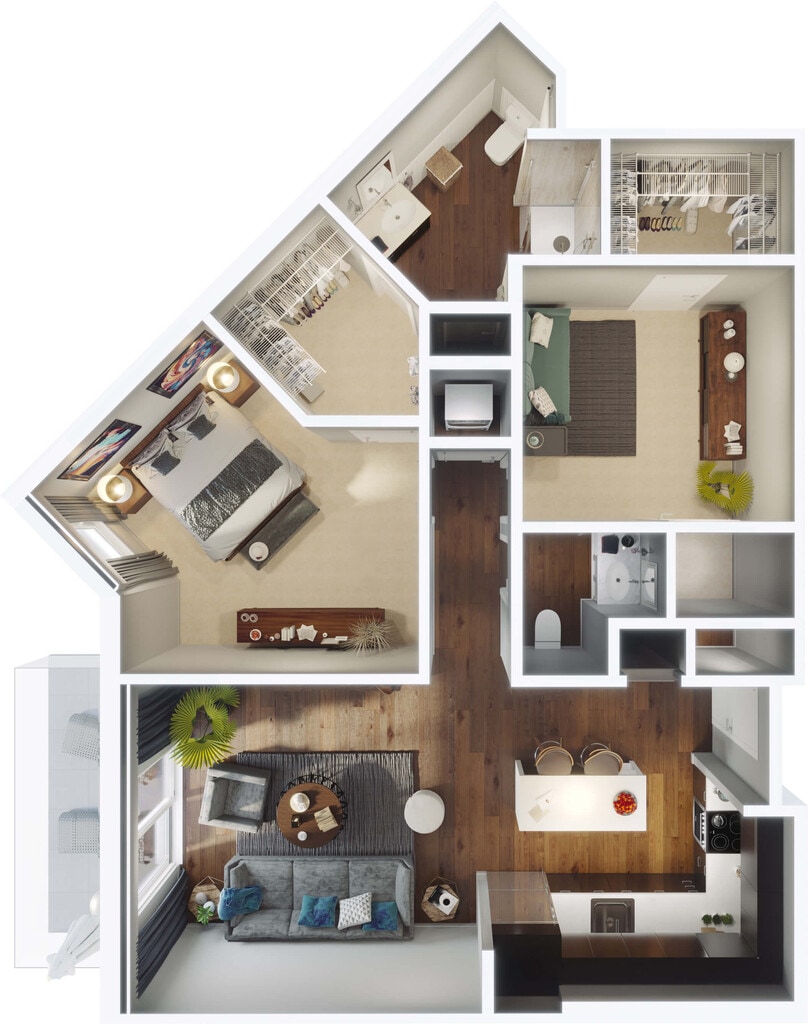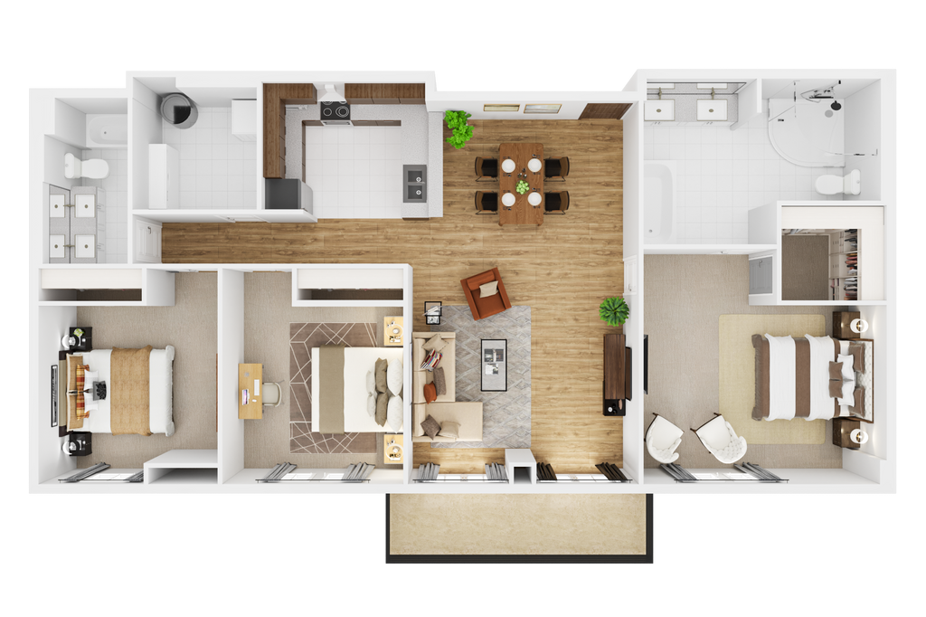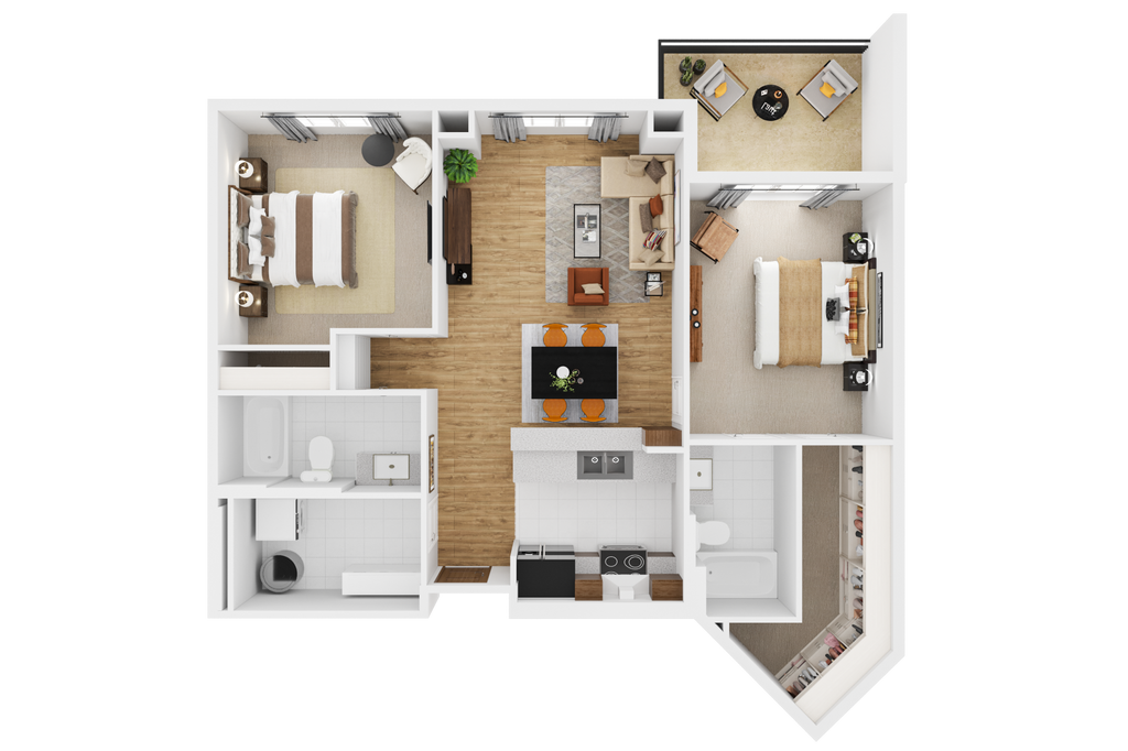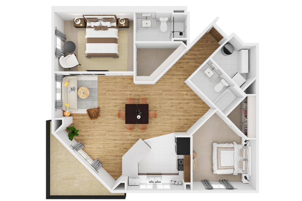 Apartment Model: ZinniaFrom $2,2001 Bedroom, 1.5 Bath, 1127 sq ftAvailable Now![]()