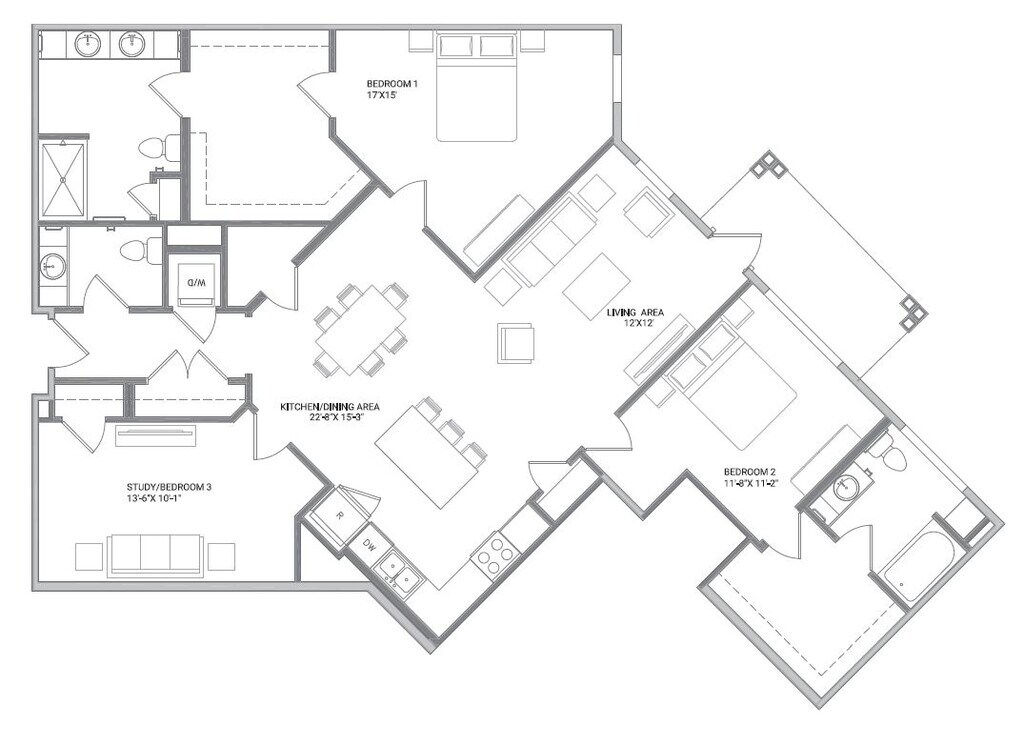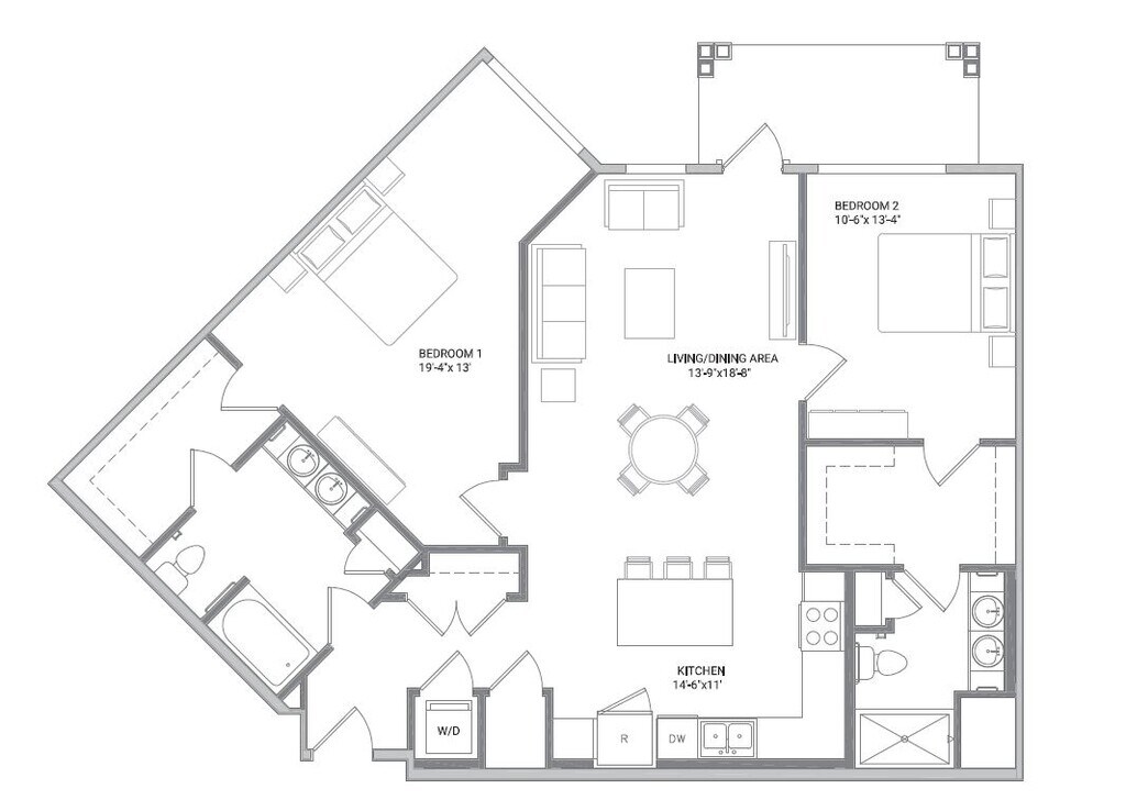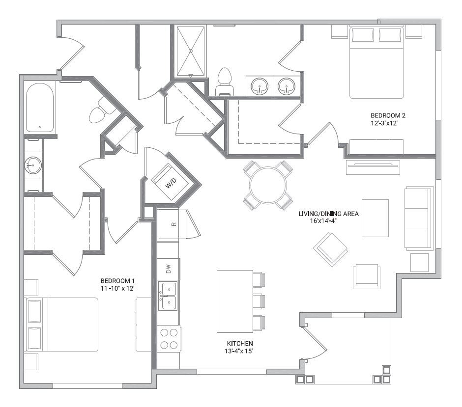 1 Bed, 1.5 Baths, 1127 sq ftAvailable NowLargest 1 BedroomThis is the largest 1 Bedroom at this PropertyModel Gallery