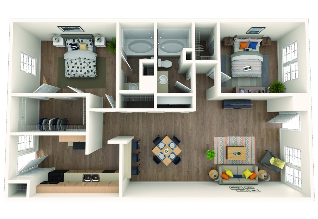 2 Beds, 2 Baths, 1007 sq ftAvailable NowModel Gallery