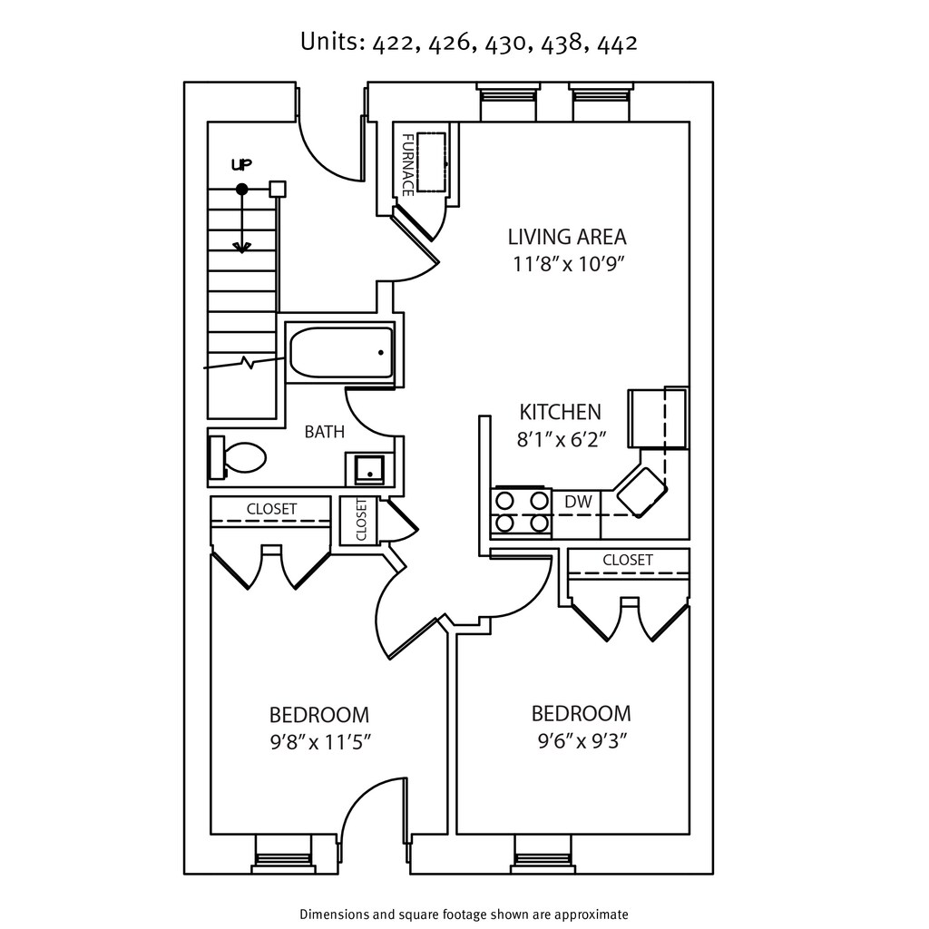 2 Bedroom / 1 Bath - Floorplan 1 Apartment Unit: 442Apartment Model: 2 Bedroom / 1 Bath$1,5752 Bedroom, 1 Bath, 613 sq ftAvailable NowApartment Unit: 426Apartment Model: 2 Bedroom / 1 Bath$1,5752 Bedroom, 1 Bath, 582 sq ftAvailable NowApartment Unit: 438Apartment Model: 2 Bedroom / 1 Bath$1,5752 Bedroom, 1 Bath, 563 sq ftAvailable Now3 Bedrooms
